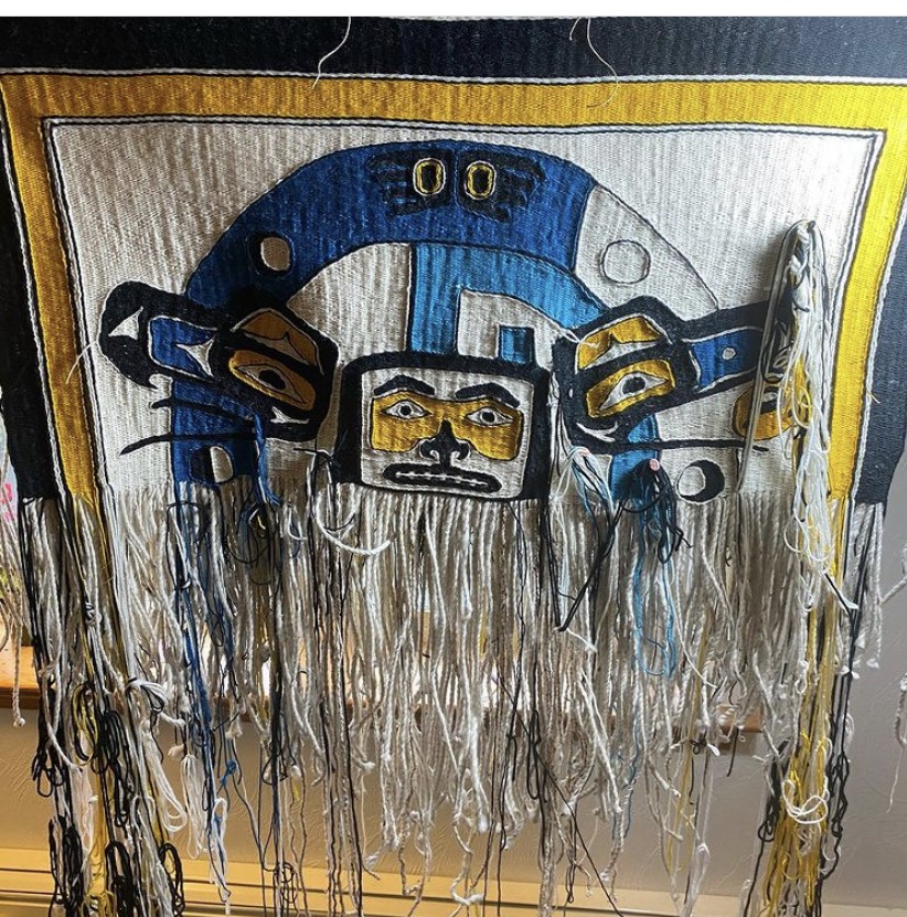The Sheldon Jackson Museum and Friends of Sheldon Jackson Museum are pleased to welcome Alaska Native artist-in-residence Laine Rinehart. Rinehart is a Tlingit Ravenstail and Chilkat weaver and will be working in the museum galleries most days between Wednesday and Sunday between 9am and 4pm from June 4-20th. During their residency, Rinehart will offer a ravenstail pendant making class (currently full) and give an artist talk on Sunday, June 20th, entitled, “Time Warp: an Exploration of Time in Chilkat Weaving.” The presentation will focus on the history of weaving, material preparation, and steps involved in weaving a Chilkat robe. Rinehart will especially speak to the stillness they experience as they prepare to weave a robe and how it impacts their perception of time.