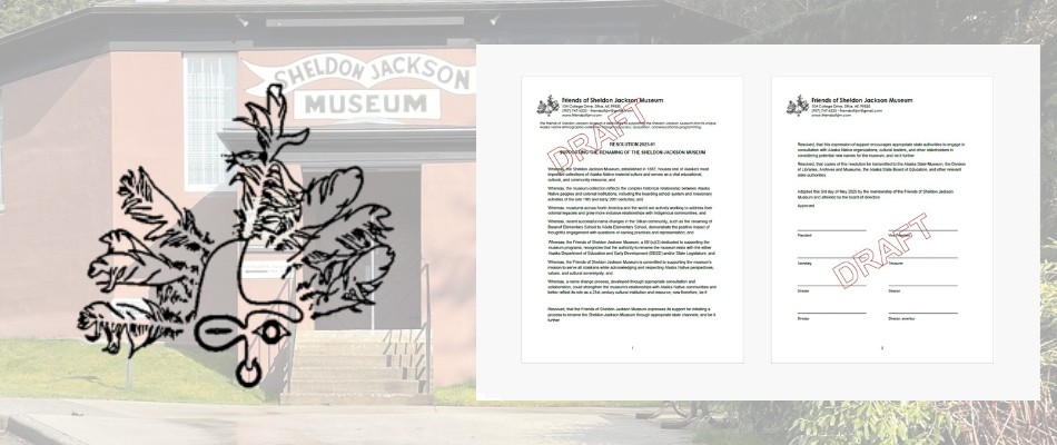 Members of the Friends of SJM are considering adopting a resolution to support changing the name of the Sheldon Jackson Museum. The vote is happening at our annual meeting on Saturday, May 3rd in the museum gallery and online. More information is available friendsofsjm.com/annualmeeting/