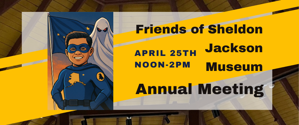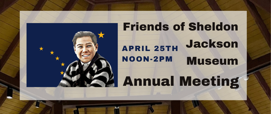 Save the Date: Saturday, April 25th. The Board of Directors invite all to the annual members meeting of the Friends of Sheldon Jackson Museum. There will be a short business meeting followed by the guest speaker, Dr. Mike Livingston, presenting on Benny Benson the Unangax̂ 14-year-old designer of the Alaska state flag.