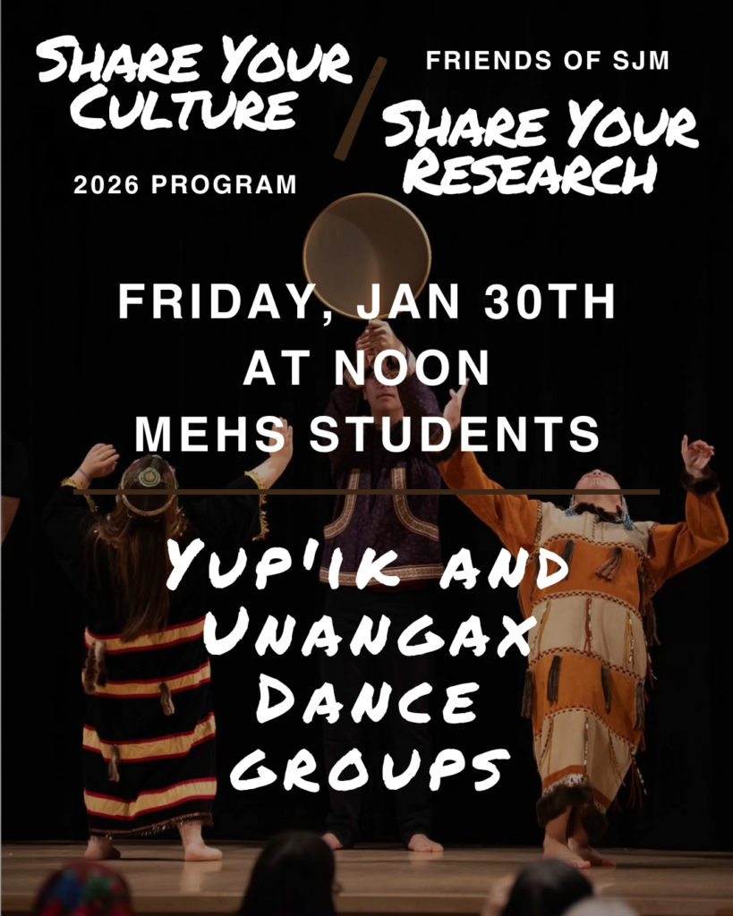 MEHS has six student dance groups that share Alaska Native cultures through song and dance. Several of the dance groups are traveling to the Festival of Native Arts at the end of next month at UAF. Learn more about the festival at https://www.uaf.edu/festival/